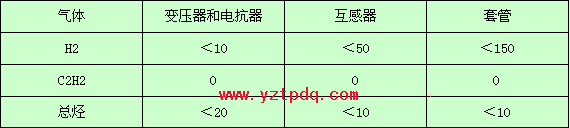 表2-2 對出廠和新投運的設備氣體含量的要求