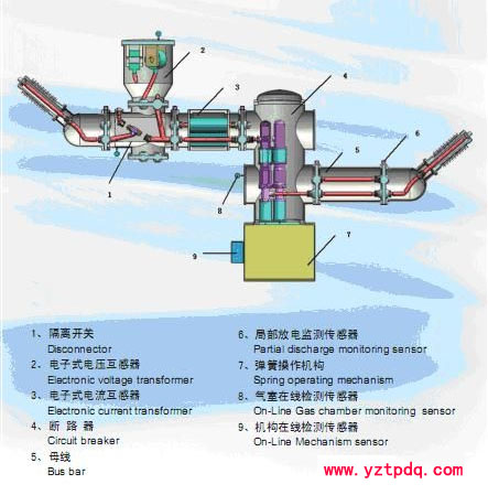 145kVGIS是一種數(shù)字型、緊湊型、智能型的組合電器。主要部分包括:智能終端、斷路器、隔離開(kāi)關(guān)、接地開(kāi)關(guān)、母線、電子式電壓互感器、電子式電流互感器、避雷器、進(jìn)出線系統(tǒng)等。