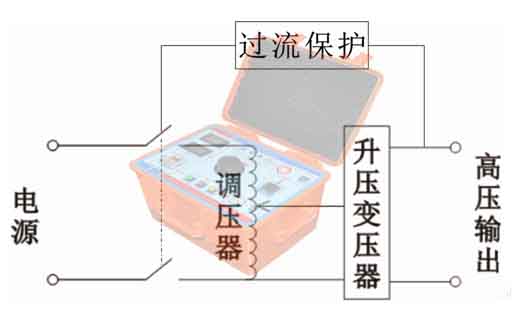 8、在升壓或耐壓試驗(yàn)過程中,如發(fā)生短路、閃絡(luò)、擊穿等過電流時(shí),電流繼電器會(huì)動(dòng)作使調(diào)壓器自動(dòng)斷電,表示被試品不合格。此時(shí)應(yīng)將調(diào)壓器回零,并將計(jì)時(shí)按鈕復(fù)位,以便下次操作。