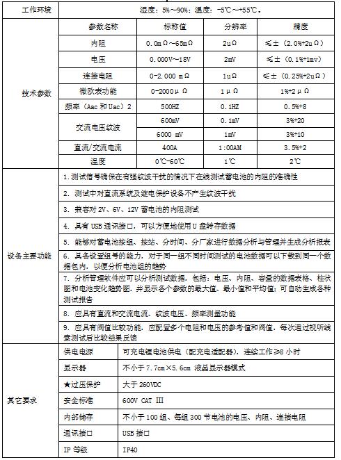蓄電池內(nèi)阻測試儀規(guī)格及技術(shù)參數(shù)