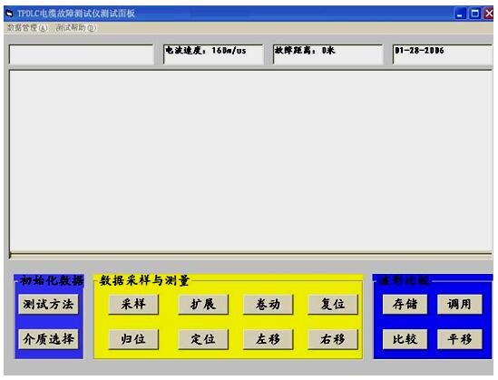 本電纜故障測試儀采用時域反射(TDR)原理,對被測電纜發(fā)射一系列電脈沖,并接收電纜中因阻抗變化引起的反射脈沖,再根據(jù)電波在電纜中的傳播速度和兩次反射波的特征拐點代表的時間,可測出故障點到測試端的距離為:S=VT/2,式中:S代表故障點到測試端的距離,V代表電波在電纜中的傳播速度,T代表電波在電纜中來回傳播所需要的時間,這樣,在V已知和T已經(jīng)測出的情況下,就可計算出故障點距測試端的距離S。這一切只需稍加人工干預,就可由計算機自動完成,測試故障迅速準確。