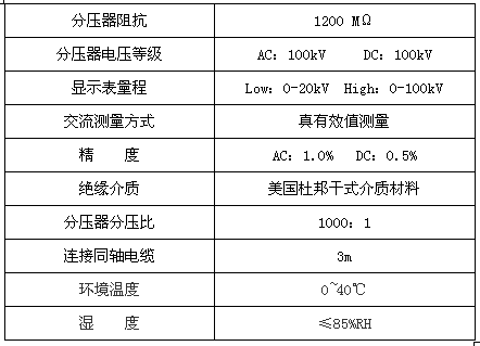 本儀器是由高壓分壓器和低壓顯示儀表構(gòu)成,高壓分壓器采用國外杜邦填充材料,特種工藝灌封,結(jié)構(gòu)更小,重量更輕,內(nèi)部局部放電量降到,可靠性更高。不存在漏油問題。工作時(shí)高壓分壓器和低壓儀表采用同軸電纜連接,高低壓部分距離較遠(yuǎn),工作安全可靠。