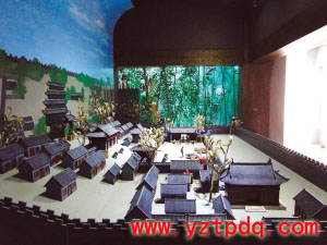 根據(jù)這一典故,在東關(guān)街歷史文化展示館內(nèi),便制作了一幅規(guī)模宏大的縮微“貴妃出嫁”場(chǎng)景。記者看到,場(chǎng)景中,不僅有抬花轎、抬彩禮的伴隨左右的丫鬟侍女,更有鳴鑼開(kāi)道的,騎著高頭大馬的和扛著各種禮儀器的,中間還有三座牌樓,雖然人物只有10厘米左右高,但每個(gè)人物的造型,甚至面部表情都極為生動(dòng)。