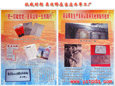 吳運鐸是在礦山上長大的。他從小隨父生活在江西萍鄉(xiāng)安源煤礦。為了謀生,進入湖北大冶煤礦做機電工。抗日戰(zhàn)爭爆發(fā)后,他來到皖南,報名參加了新四軍,原想上前線拿槍殺敵,卻被安排到軍司令部修械所制造槍炮子彈。看到所造的步槍和子彈送到前線去了,緩解了部隊作戰(zhàn)所需槍支彈藥緊張的矛盾,吳運鐸認識到造槍拿槍一樣是為革命,因而將修槍造彈視為自己的神圣使命。1939年5月18日,他光榮地加入了共產(chǎn)黨。在極端艱苦的斗爭環(huán)境中,吳運鐸始終抱著“不辱沒共產(chǎn)黨員這個崇高稱號”的想法,從不退縮,一往向前。在油坊頭籌建兵工廠初期,一無廠房,二無設備,在吳運鐸的帶領(lǐng)下,先借用群眾幾間草房干起來。為了解決設備問題,他們利用搜集的廢舊鋼材,制成各種機器數(shù)十臺。不到幾個月,就建成了鐵皮、鋼板結(jié)構(gòu)的廠房200多間,在廠東南角建起了煉鐵爐,西北角建起了煉銅爐,占地200余畝,有工人200多人,干部50多人。每到夜晚工廠被汽油燈照得通明,兩座高爐的火光映紅夜空,兵工廠不僅生產(chǎn)子彈、榴彈、炮彈,還不斷研制新式武器,制造“52”小炮、“73”炮、“82”炮。吳運鐸在潛心試制各種殺傷力更強的武器過程中多次負傷。一次,在試爆炮彈時,一枚啞炮突然,吳運鐸被炸傷,左手被炸掉4個手指,左眼被炸傷,右膝蓋和腳趾被炸去一半,滿臉傷口流血不止。他被抬上卡車送醫(yī)院搶救療傷,昏迷了15天才恢復知覺,可他未等傷口痊愈,就提前出院,打著繃帶,回廠邊工作邊治療,又投入了軍工生產(chǎn)。