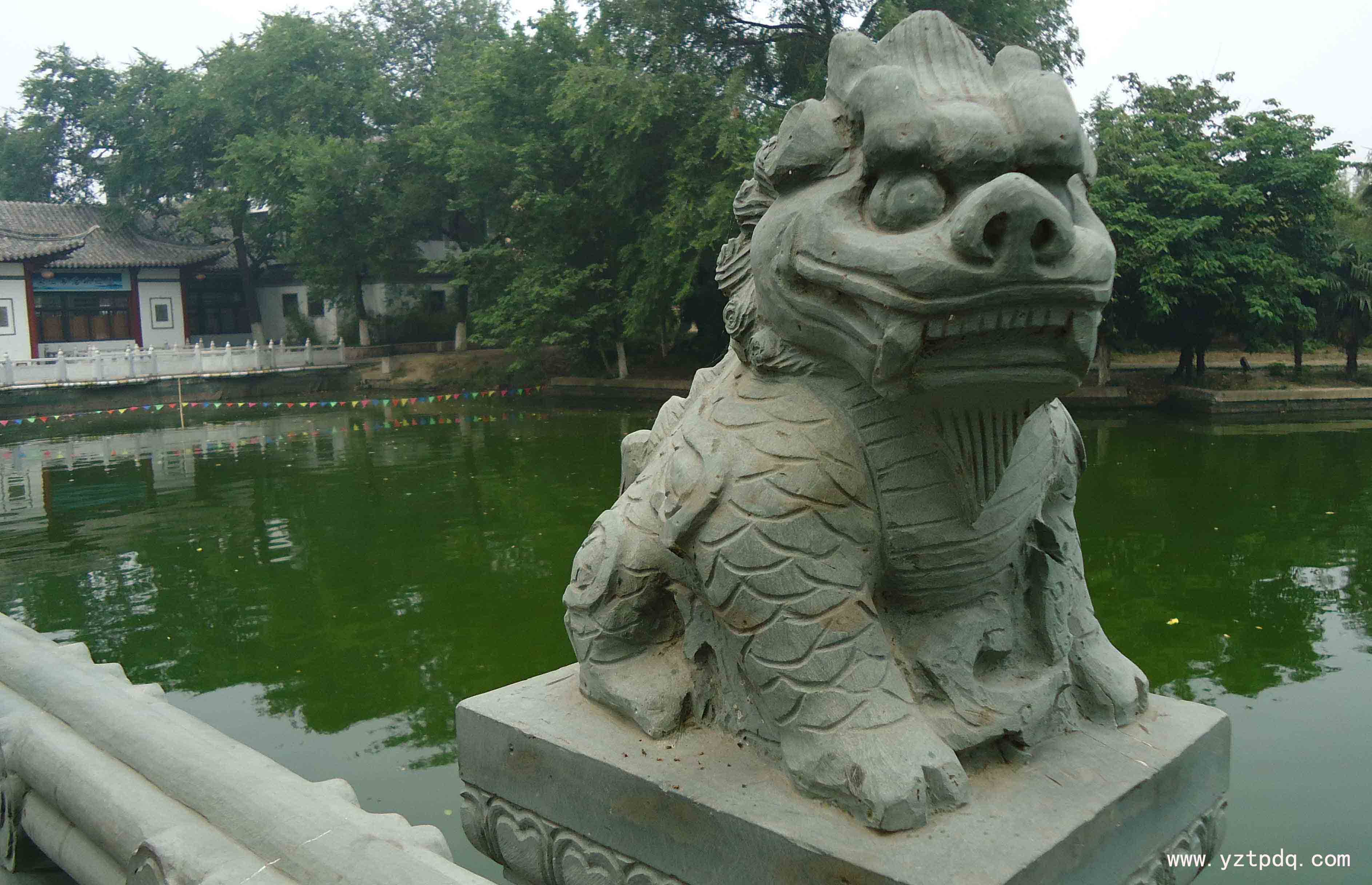 石獅又是幸運(yùn)的,在“文革”中,在那個(gè)所謂“破四舊”的動(dòng)亂年代,寶應(yīng)有好心人,不知以什么樣的理由,將石獅一家埋于地下,使其免于一劫。改革開放的年代,在城市的擴(kuò)建筑路時(shí),這對(duì)石獅又被挖出。神奇的是,除了幼獅的那條斷腿外,它們毫發(fā)無(wú)損。人們象迎接神獸一樣,將它們移至古城最佳風(fēng)景區(qū)縱棹園大門口。