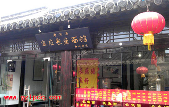 揚(yáng)州東關(guān)街的長魚面館是一個地道寶應(yīng)氾水人開的夫妻店,兩年前他們勇敢地把寶應(yīng)長魚面的牌子掛在揚(yáng)州東關(guān)街,成為揚(yáng)州開寶應(yīng)長魚面館的第一人。揚(yáng)城的面館隨處可見,各種配料的面味道都很好,價格也不貴,都 有固定的人群。要讓寶應(yīng)長魚面在東關(guān)街立足實屬不易。這兩位執(zhí)著的寶應(yīng)人,他們堅持從寶應(yīng)進(jìn)野生鱔魚,堅持使用寶應(yīng)當(dāng)?shù)刈鞣挥脡赫シ椒ㄉa(chǎn)的油(成本比寶應(yīng)當(dāng)?shù)氐倪€高),每天堅持六個小時的時間熬湯,熬湯用的不銹鋼湯桶都熬壞了許多只。他們本本分分的做事,認(rèn)認(rèn)真真地下好每一碗面。這里沒有電視廣告的宣傳,只有吃過他一碗碗面的人的口碑,始終如一的堅持質(zhì)量,任何人任何時候來吃味道都一樣。許多偶爾來店吃過長魚面的人,以后就成為該店的常客,還會主動介紹給身邊的朋友。如果你去過揚(yáng)州東關(guān)街的長魚面館,你還會發(fā)現(xiàn)這里客人的不同之處,他們注重營養(yǎng)注重美食,由于互相常見面,還會互相招呼聊一聊,非常和諧。有的比較遠(yuǎn)的還介紹自己吃面的方法:分開打包帶回放在冰箱里,可一周來兩次,味道不變;有的它帶回去作為一道主食,為家宴增色不少。兩位店主閑暇時也會旁聽,但從不插話,如你需要問他們有關(guān)問題,你會得到不加渲染的回答,這也可能是寶應(yīng)人的質(zhì)樸。