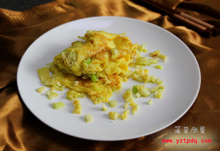 這道菜的關(guān)鍵在選料和火候,一定要選最鮮嫩的蒲菜芯;中火攤到雞蛋餅略微變色即可出鍋,攤老了蒲菜失去水分,清新的汁液和脆爽的口感會(huì)流失。