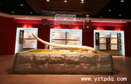 走進寶應博物館,一進一樓大廳,就能看見一根象牙,長420厘米,最大直徑22.2厘米,淺白色,月牙狀彎曲,表面平滑,為國內出土同類化石之最,堪稱“中華第一牙”。這根象牙是2003年9月在寶應夏集鎮(zhèn)境內出土的,是一個古菱齒象牙化石,古菱齒象比猛犸象要大20萬歲,體型比猛犸象還要大,是當時地球上顯赫一時的“大象家族”。